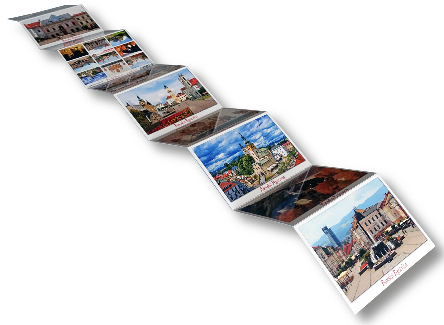 The traditional souvenir in the form of a folding book "Banská Bystrica - 10 postcards" consists of 10 pages folded like a folding book.